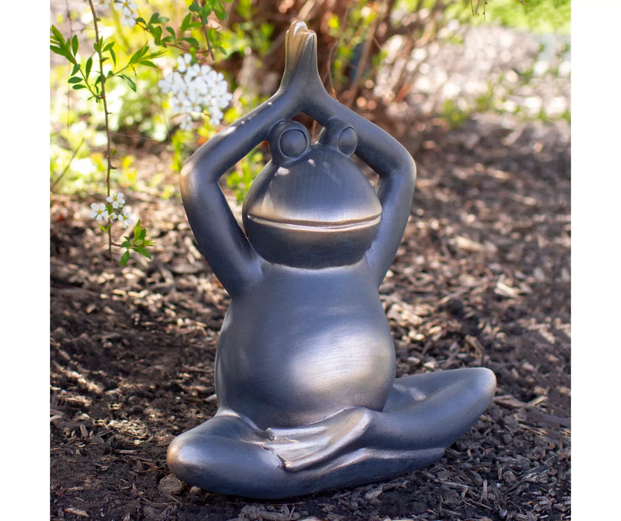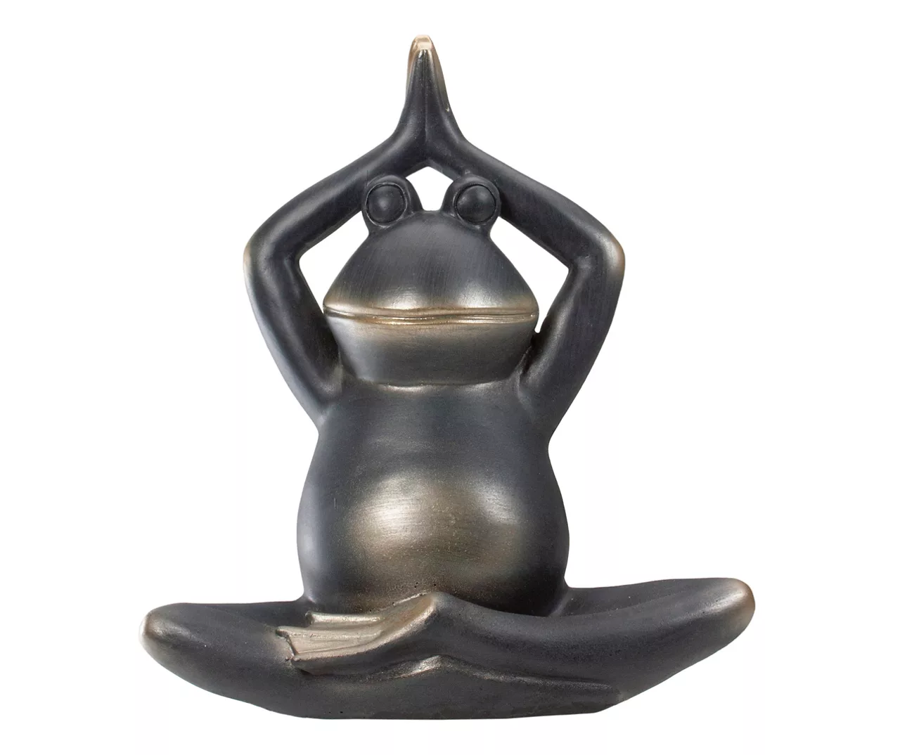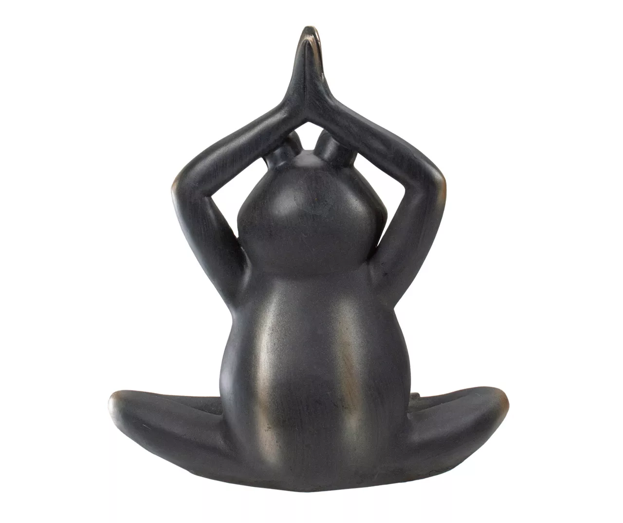 - Sculpted frog sitting in a praying yoga position