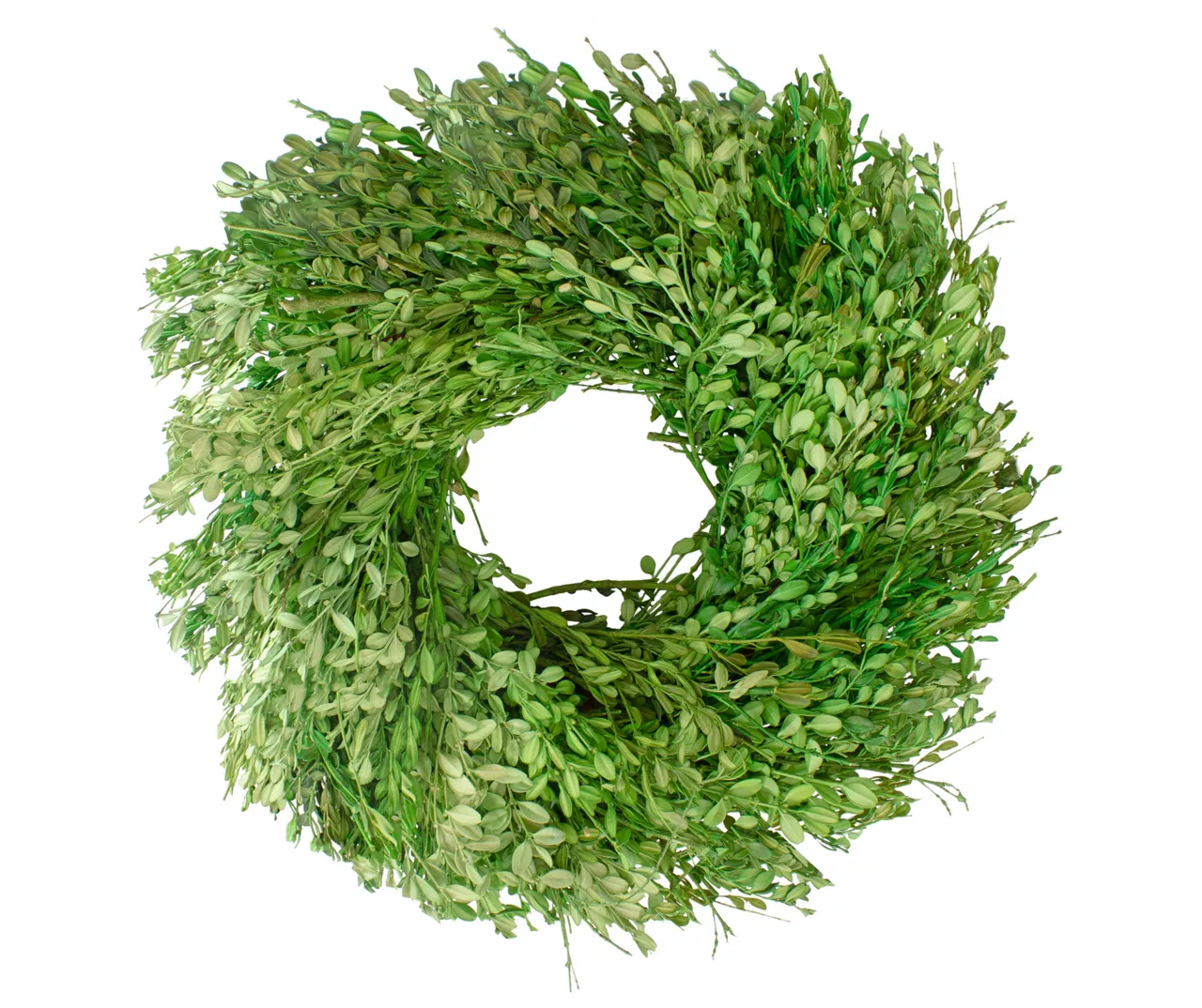 With spring right around the corner, this adorable unique wreath is the perfect way to welcome in the new season. It’s beautifully constructed of green foliage that spirals around in a round shape for visual interest. This wreath is a stunning seasonal addition to a living space, entryway or kitchen.