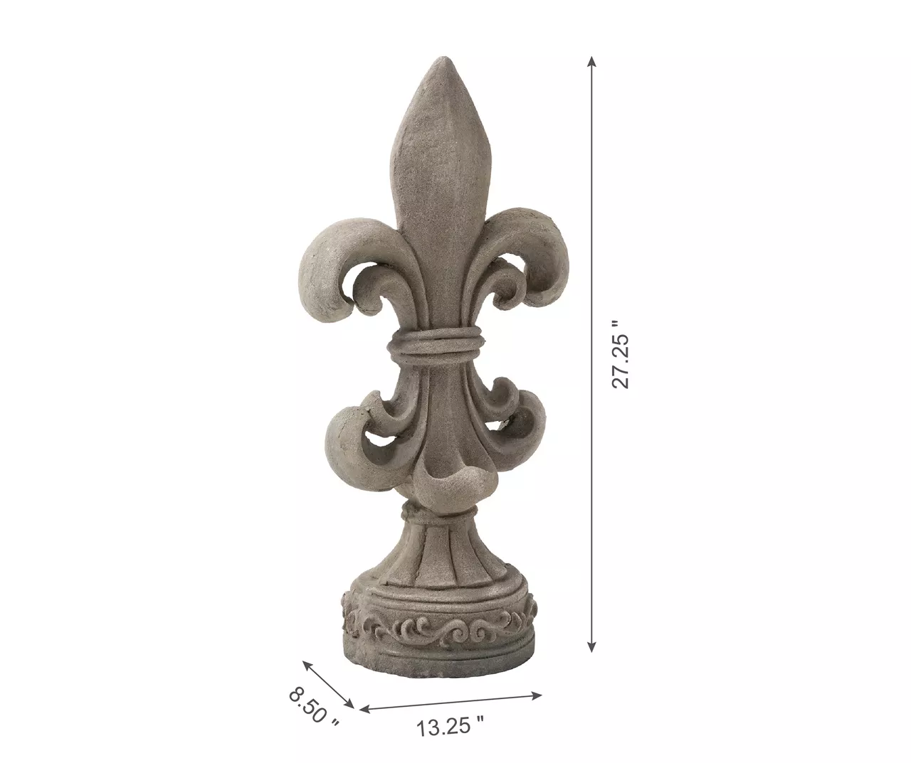 Embrace all the charm and whimsy of spring with this elegant Fleur De Lis garden statue. The handmade distressed and imitation concrete details makes it looks natural and contemporary. This decorative figurine is perfect for display in a garden, yard or patio.