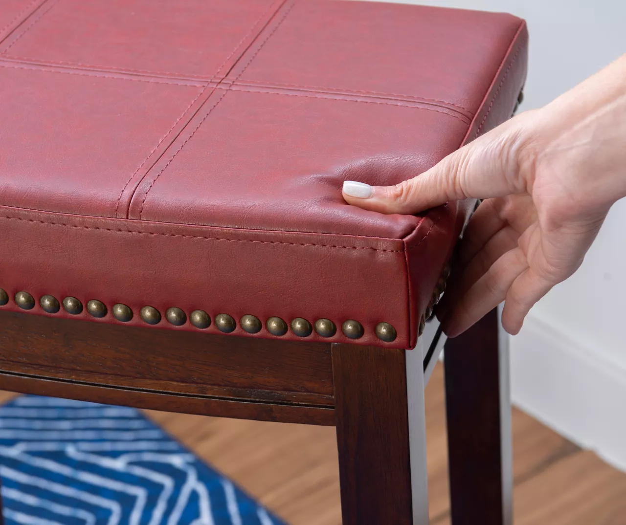 - Brushed brass nailhead accents