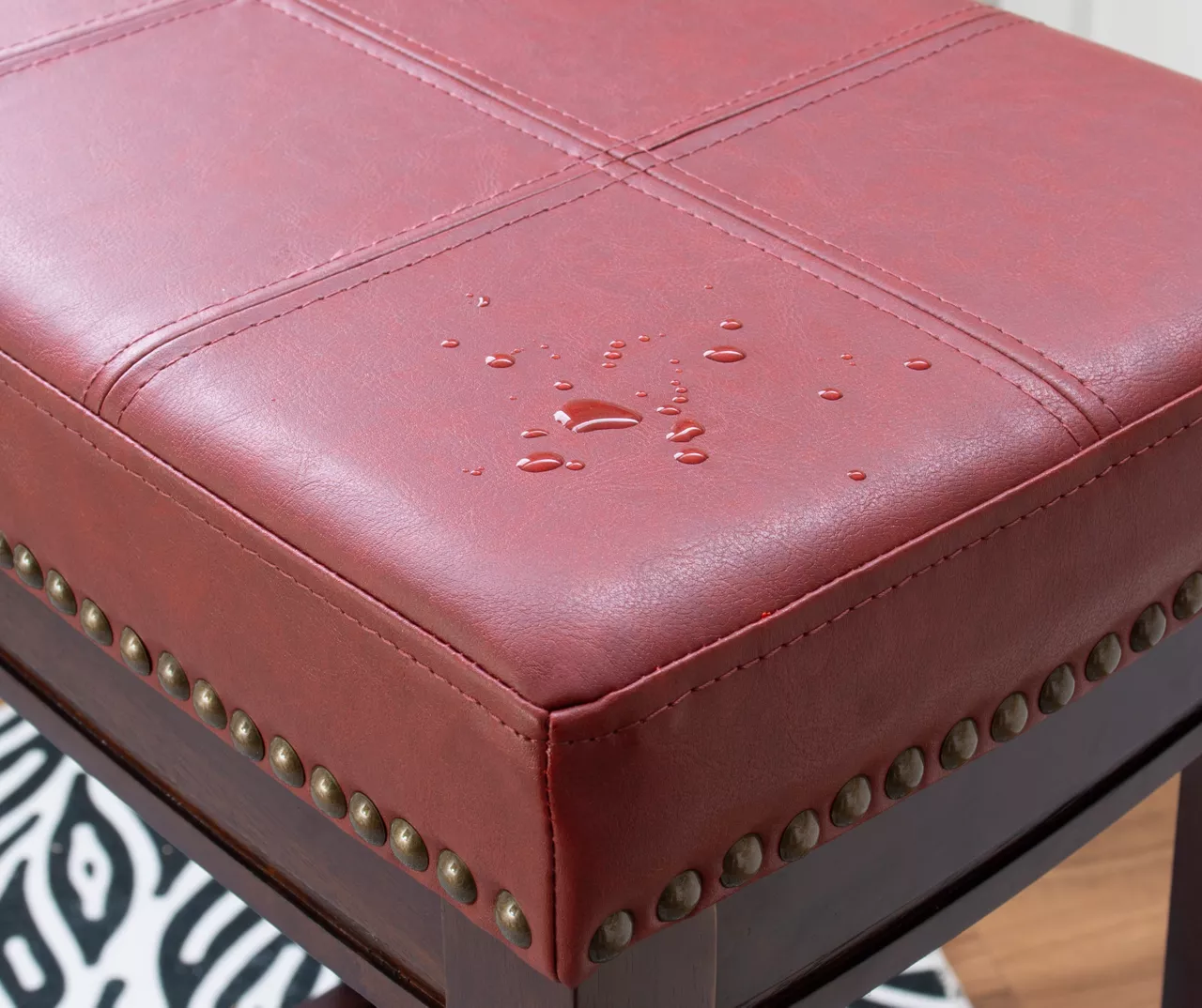 - Red faux leather seat