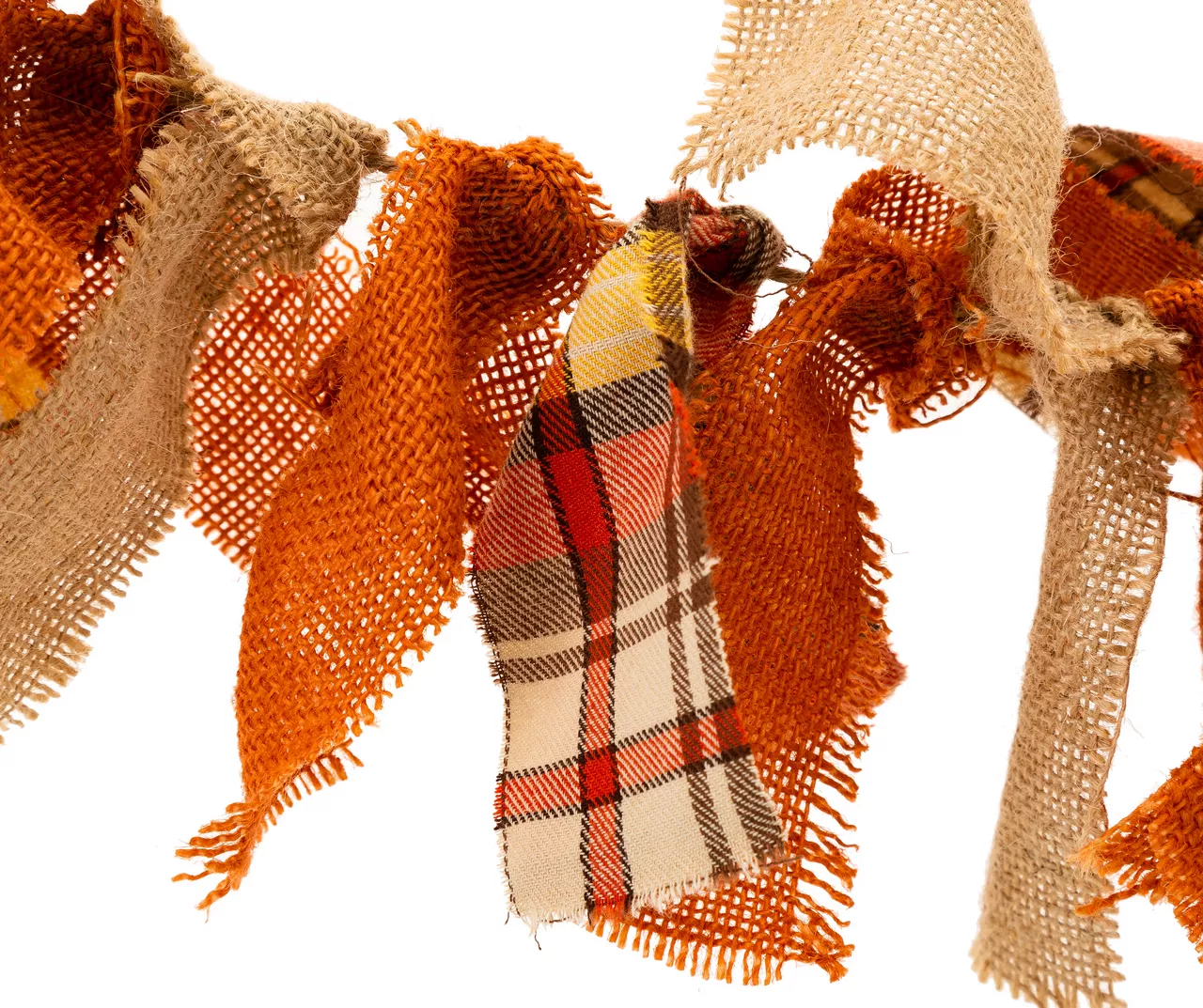 Decorate your mantel or wall this fall with this charming burlap and plaid garland. Full of rustic harvest charm, this garland is an easy and quick way to spruce your home up for the upcoming autumn holidays.