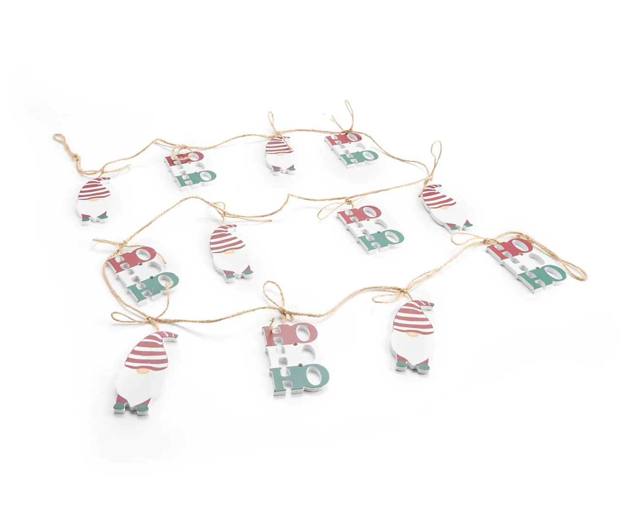Decorate your home with the whimsical winter design of this garland strand! Cut-out pieces of fairytale gnomes are paired with “Ho Ho Ho” messages. Designed with a flexible rope strand, this garland is a charming Christmas addition to a mantel, table or shelf.