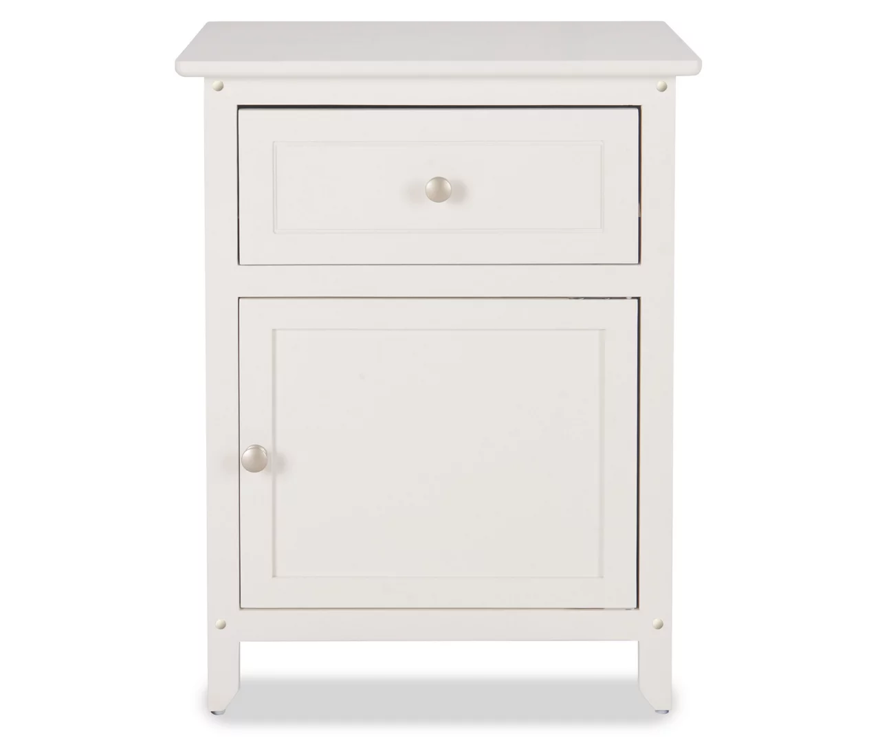 For a stylish accent that keeps nighttime essentials within arm’s reach, choose this spacious side table. With a top drawer and cabinet, it’s crafted in a traditional style for an enduring look that fits a variety of interior design themes, from a classic to coastal. The brushed silver hardware adds a sophisticated touch.