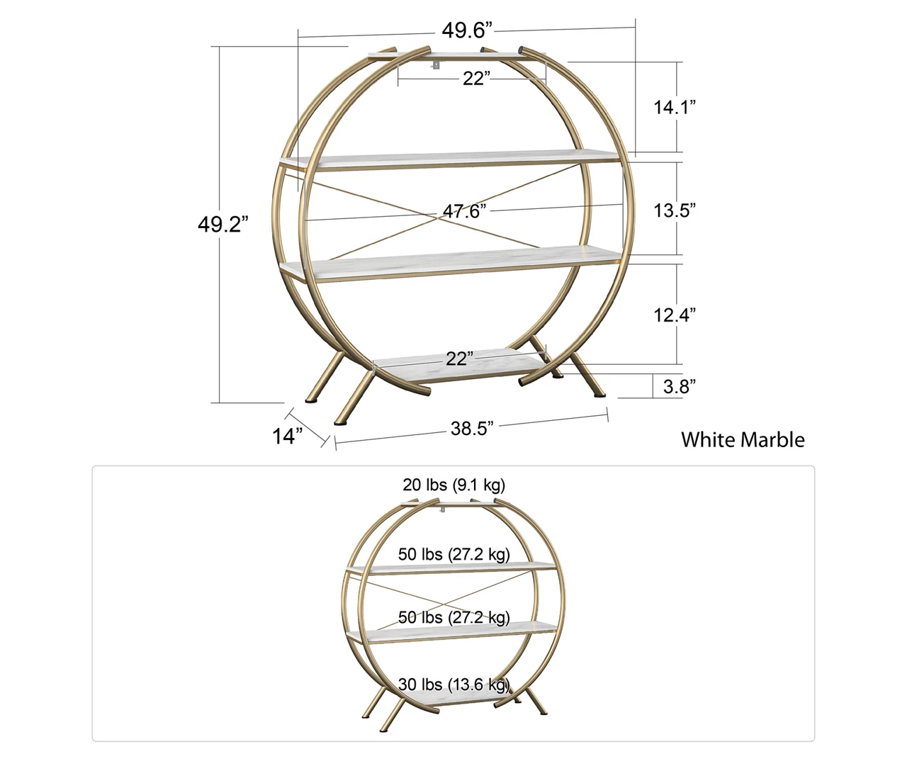 • Middle shelves weight limit: 50 lbs. (each)
