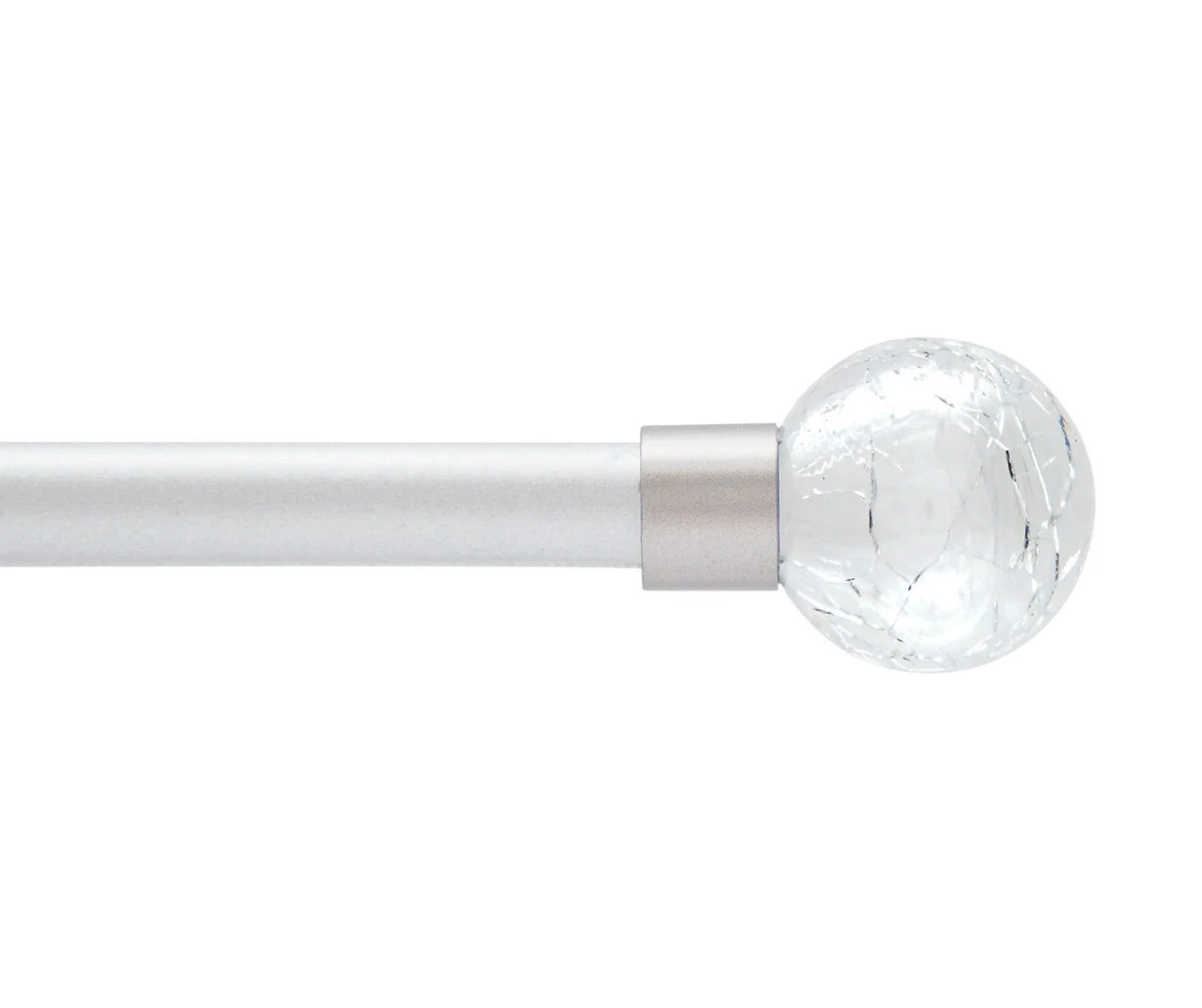 - Ends feature a crackled glass orb finial
