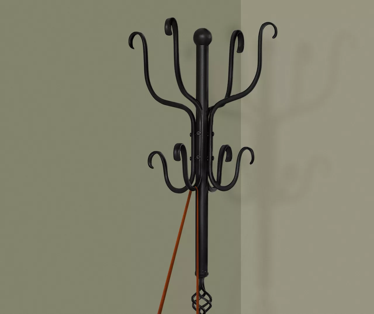 Enhance the look your entryway or hallway with this elegant traditional hammered black metal coat rack. A lovely accent piece on its own, this piece will help to keep you organized in style. The eight hanging hooks allow you to keep everyday items like coats, hats and jackets neatly in place while the classic appeal is reminiscent of a romantic Parisian apartment that will provide you with years of lasting enjoyment.