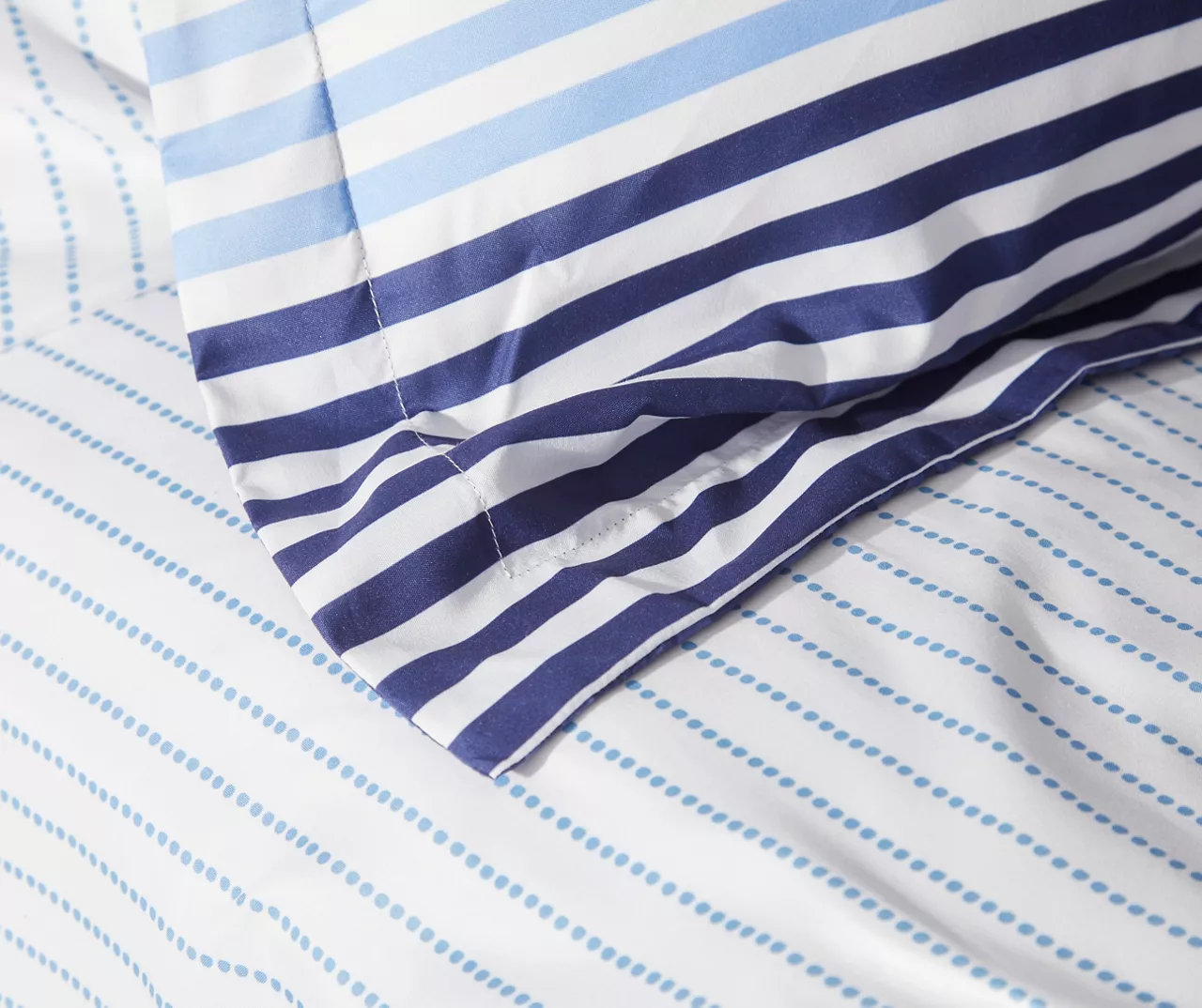 - Navy geometric pattern on the reverse side of the comforter