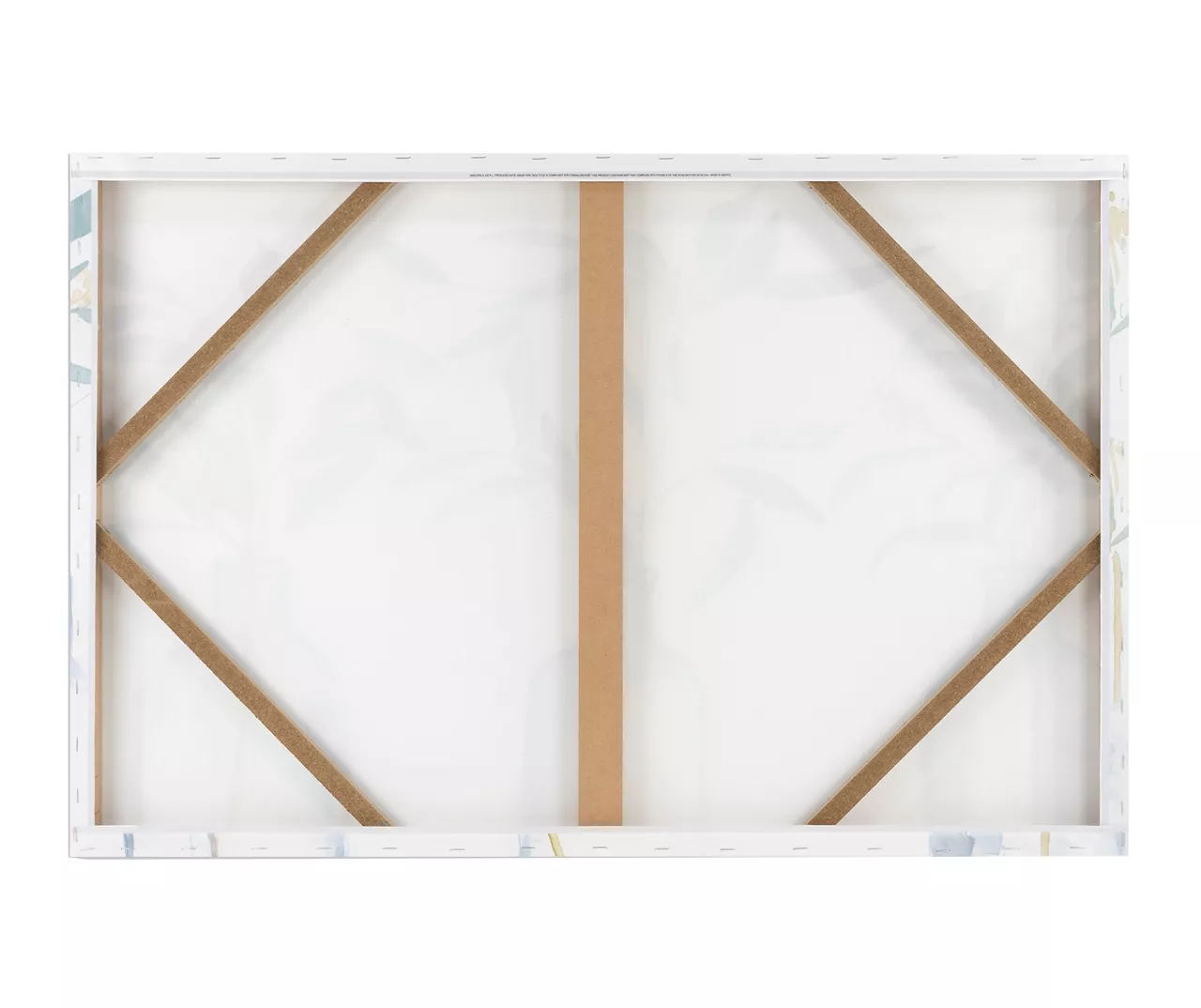 A painted botanical design is shaped by gentle strokes in soothing shades of green and blue with hints of yellow on gallery-wrapped canvas for a creative note of nature in your home. Gouache-style texturing adds a dimensional visual element that makes this pretty pick pop wherever you choose to place it.