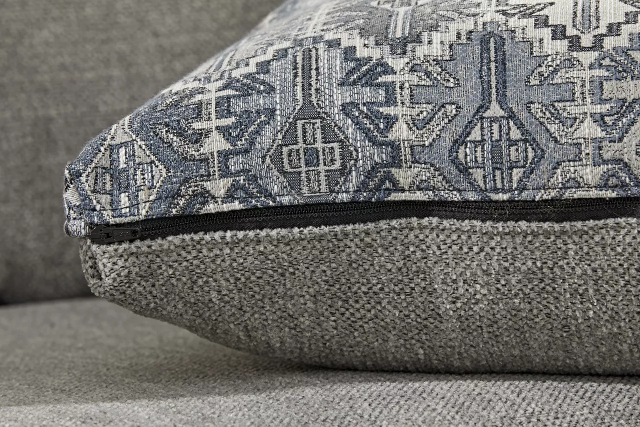 - Upholstered in soft, yet durable neutral gray chenille fabric