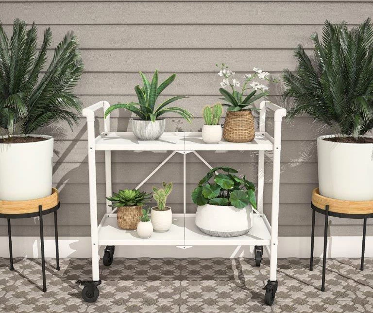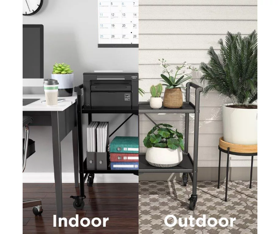 Cosco Outdoor Living’s rolling serving cart is designed for multi-purpose outdoor and indoor use. It is perfect for entertaining guests and providing additional storage in many different parts of the house. This black cart can be used in many creative ways, such as to serve refreshments at your next outdoor patio gathering, put cleaning supplies on the cart for easy movement around the house, grow indoor plants by your favorite window and more. When not being used, Cosco’s rolling cart folds flat to compactly store in a closet.