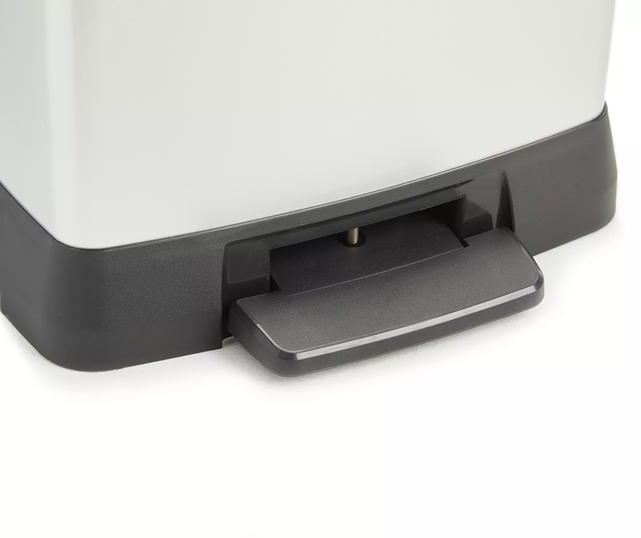 Keep your household waste out of sight with the Deco 7.9 gallon step on wastebasket. It features the look of stainless steel in a durable and easy to clean resin material. The finish will not rust or dent and is fingerprint resistant. The step on pedal is designed to last and you never have to use your hands. The lid is designed to open with ease, but close slowly and quietly.