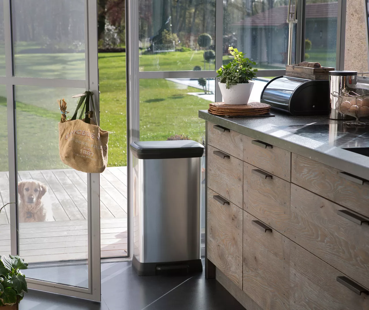 - Ideal to use in the home as a kitchen or bathroom wastebasket for both recycling and garbage