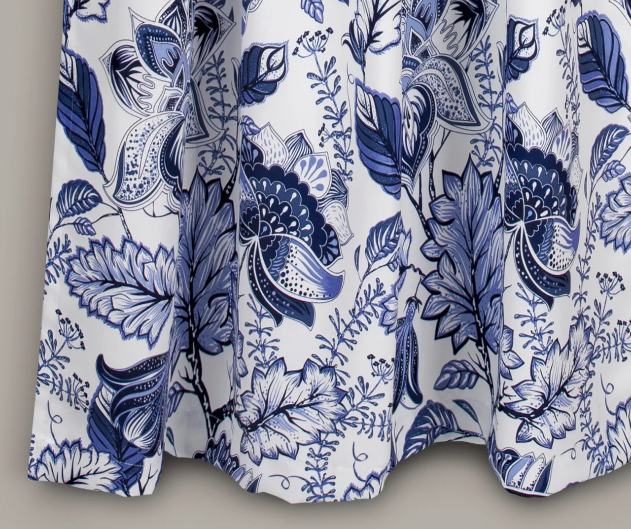 - Beautiful Jacobean-inspired floral print in shades of blue