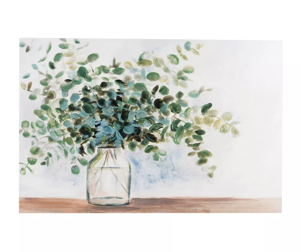 A painted eucalyptus arrangement is shaped by gentle strokes in soothing shades of green, blue and brown on gallery-wrapped canvas for a creative note of nature in your home. Gouache-style texturing adds a dimensional visual element that makes this pretty pick pop wherever you choose to place it.