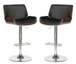 Glitzhome Mid-Century Modern Faux Leather & Chrome Adjustable Bar Stools, 2-Pack