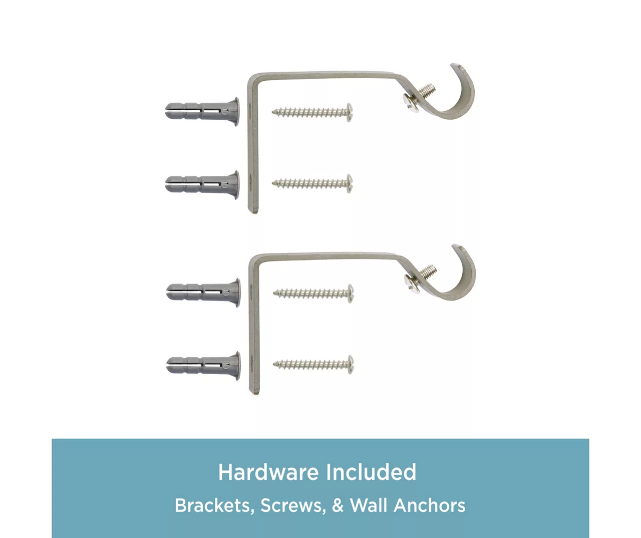 - Includes 1 – telescoping curtain rod with finials, 2 – brackets, screws, drywall anchors and installation instructions