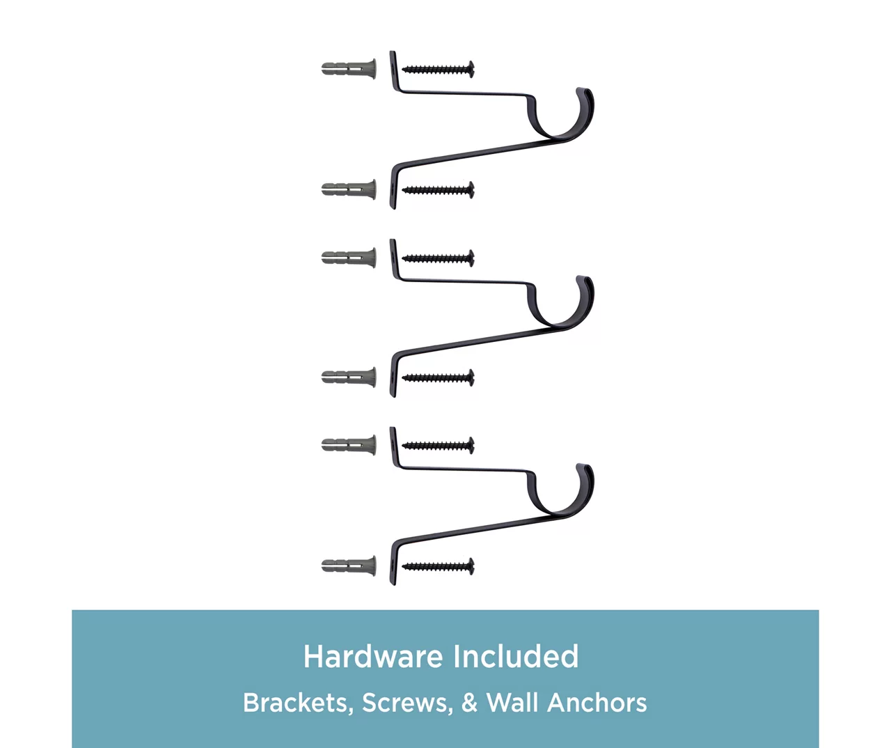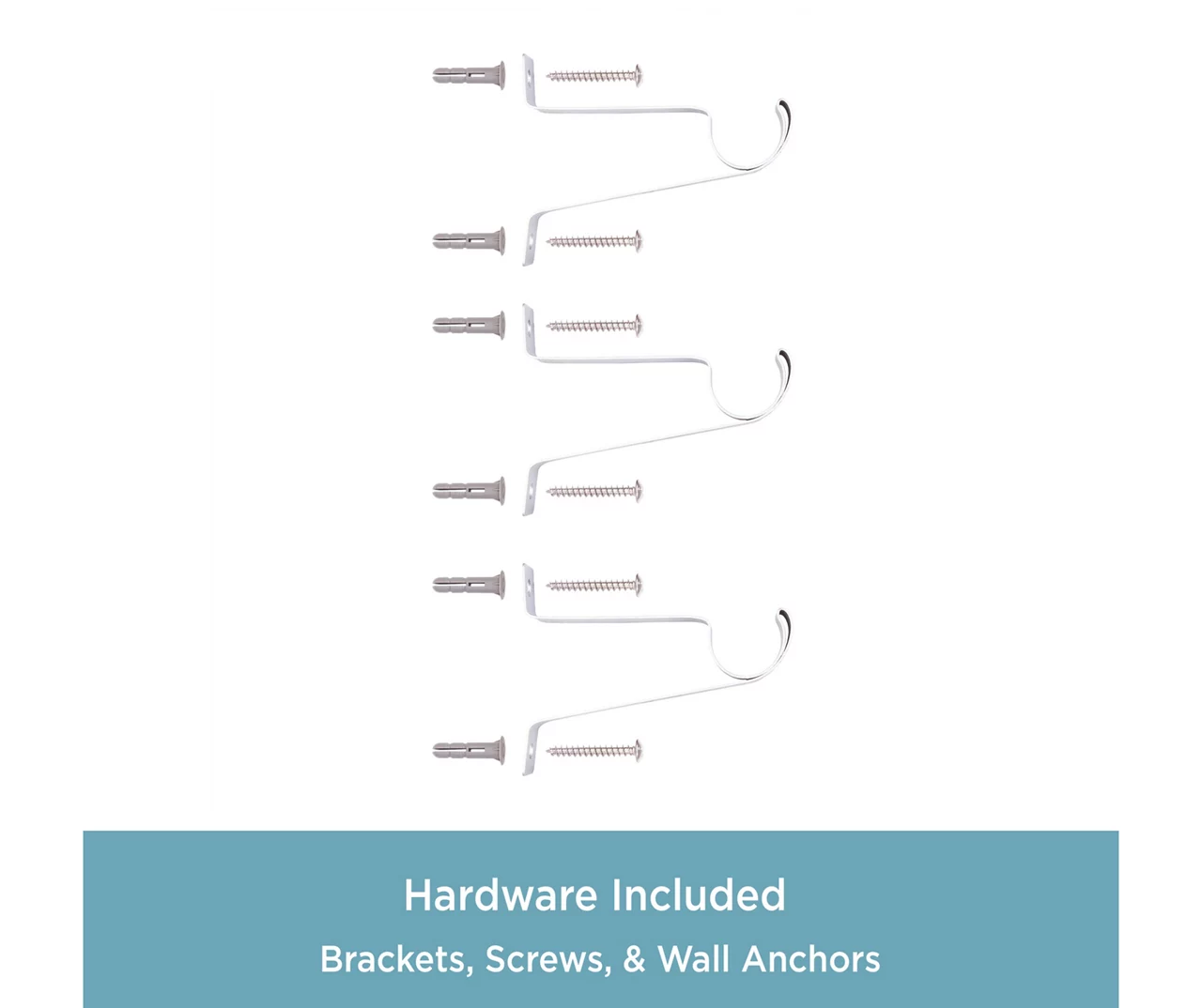 - Includes 1 telescoping curtain rod with finials, 2 brackets, 1 center support, screws, drywall anchors and installation instructions