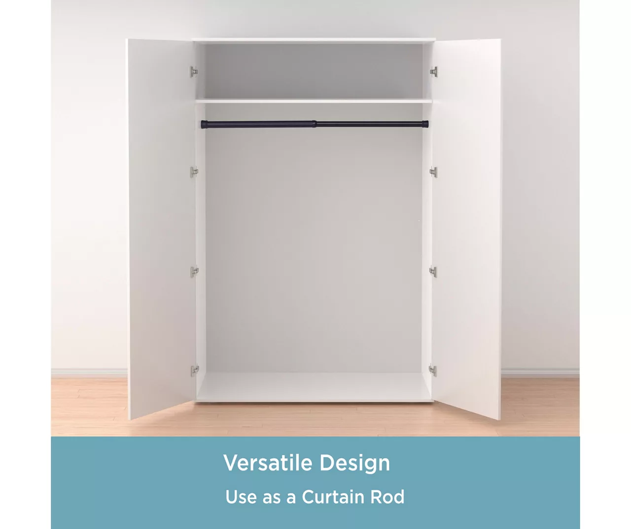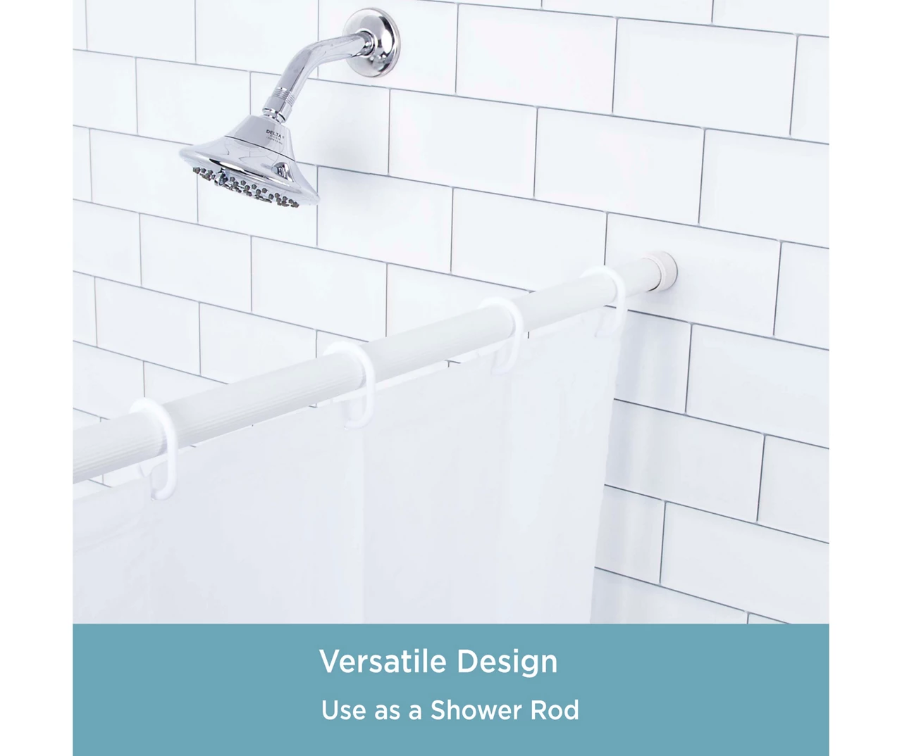 - Use it as a shower curtain rod in standard and oversized bathtubs, or for added storage in closet or laundry rooms