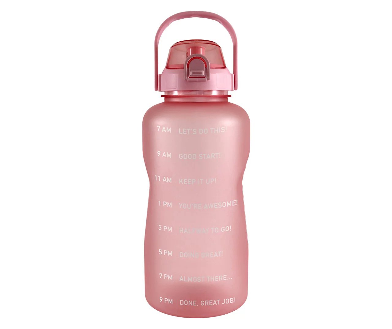 Drinking consistent amounts of water throughout the day can be a difficult task to remember. Thankfully, this extra-large water bottle sports an easy-to-follow time frame printed right on the side so you can stay hydrated throughout the entire day. With a locking lid, carrying handle and soft touch finish this motivational water bottle is easy to carry along no matter your work style.