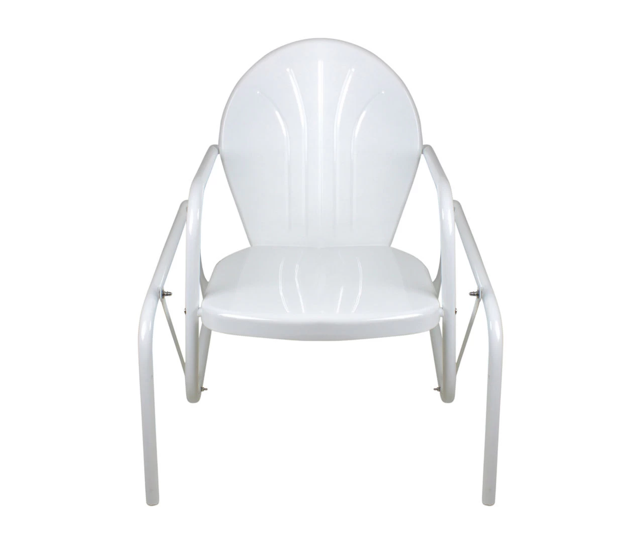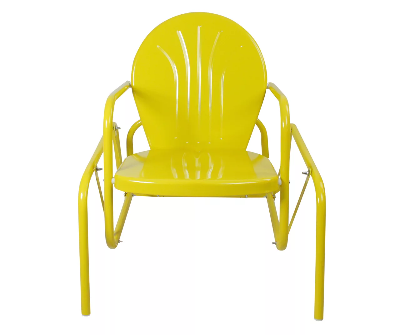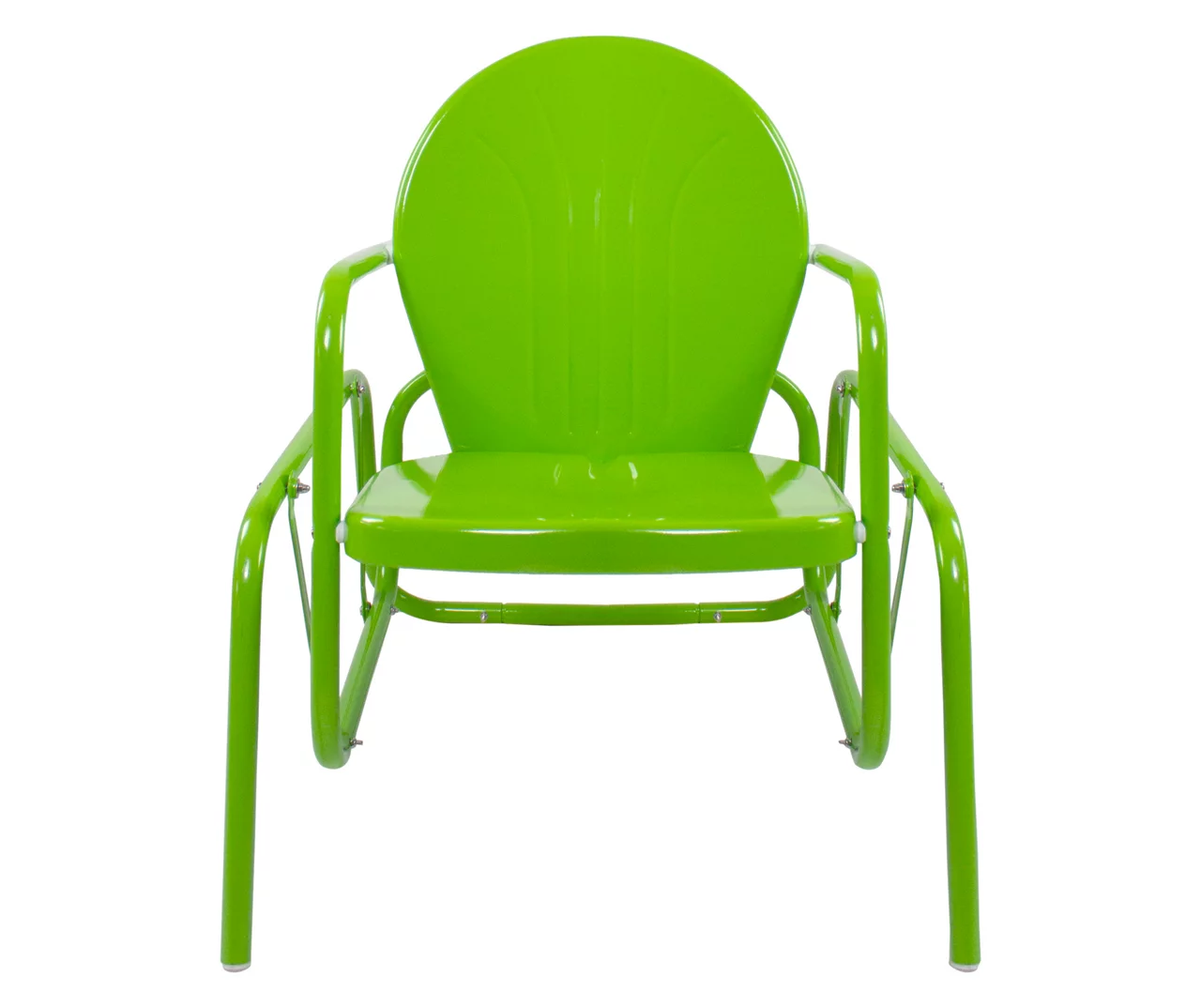 Bring a touch of the 1950s to your yard or porch with this vintage-style metal glider chair. With its weather-resistant powder-coated finish you will have years to enjoy this classic piece. Perfect for enjoying a glass of wine on the patio with family and friends or a good book by yourself.