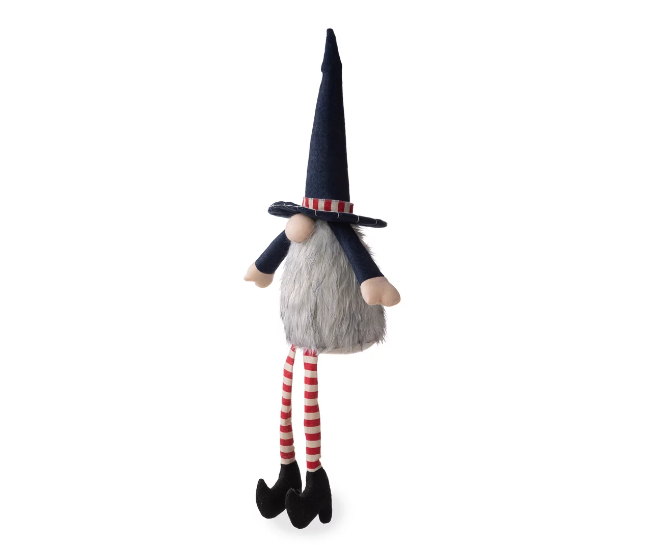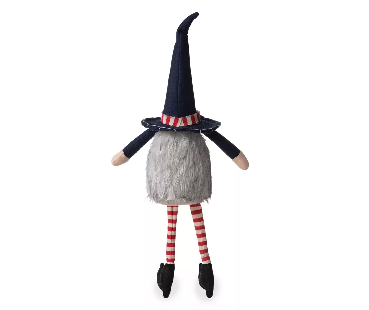 The stuffed gnome sitter adds whimsical décor and magic to any patriotic display. Adjust the posable hat and dangle the legs over a bookshelf, mantel or side table to add a patriotic accent in any space.