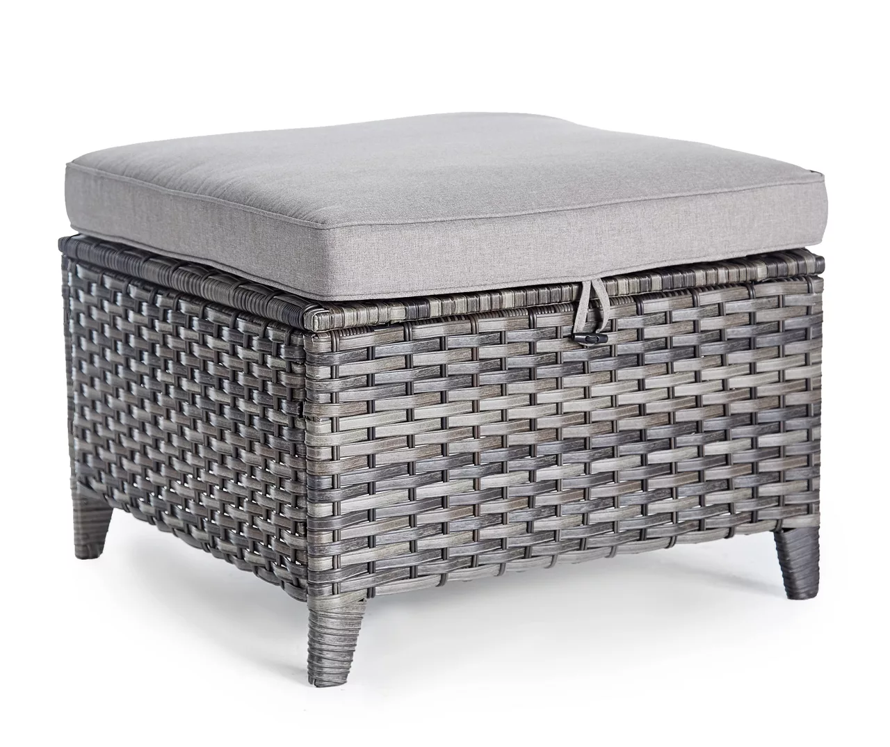 Create an inviting place to gather in the great outdoors with the Rockbridge sofa and ottoman set from Rea Living. Each piece is made with powder-coated steel frames wrapped in decorative all-weather wicker. Complete with cushioned seating, this sofa and ottoman arrangement is perfect for a patio, deck or porch.
