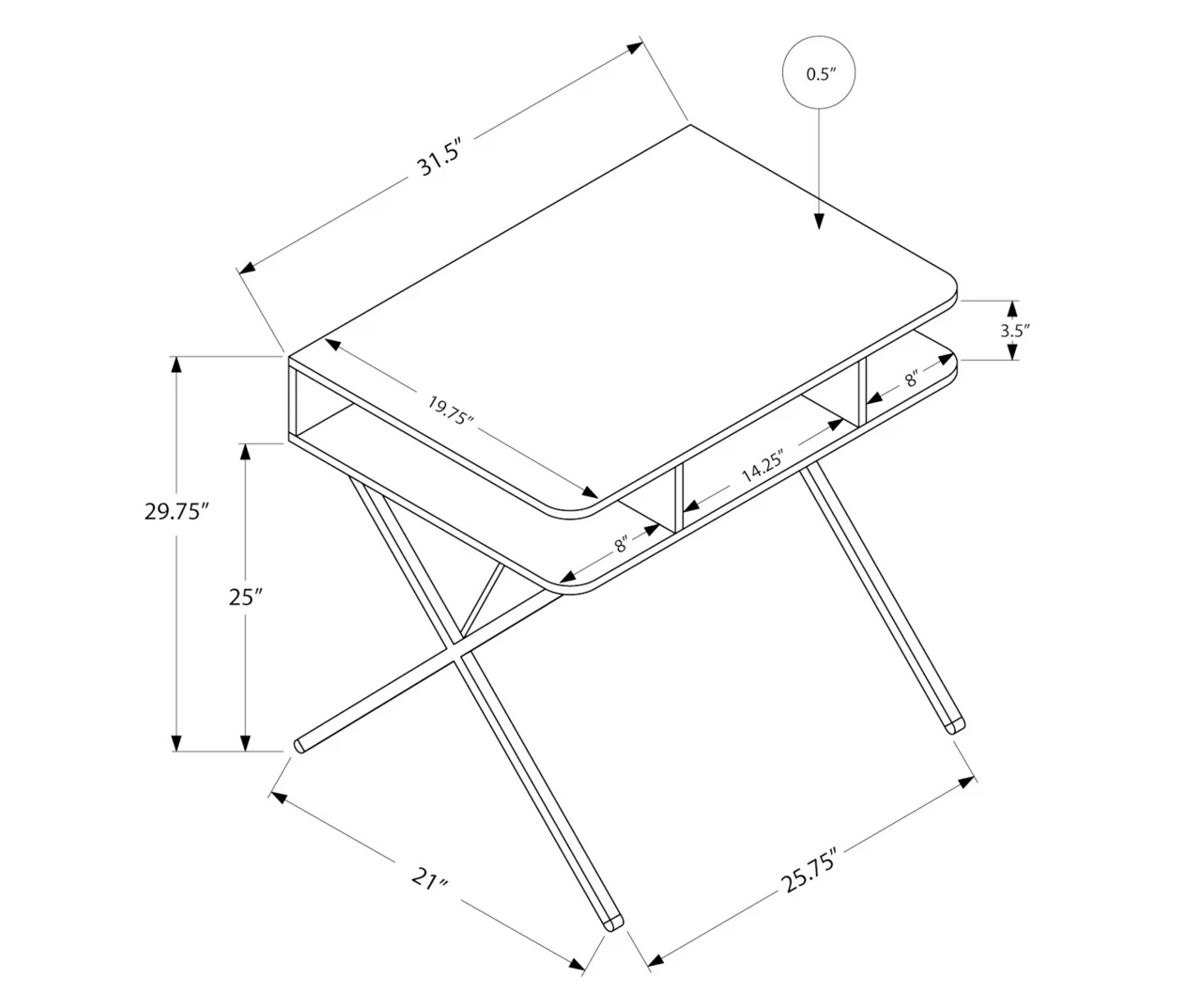 Redefine your workspace at home or even at the office. This sleek, minimalist white writing table includes three open cubbies to handle all your office supplies while keeping the surface space clean and tidy. This ensures a comfortable and efficient computer table or office desk, allowing you to get the job done in due time. Perfect in small spaces, the metal crisscross legs provide a sturdy tabletop to meet your working needs.