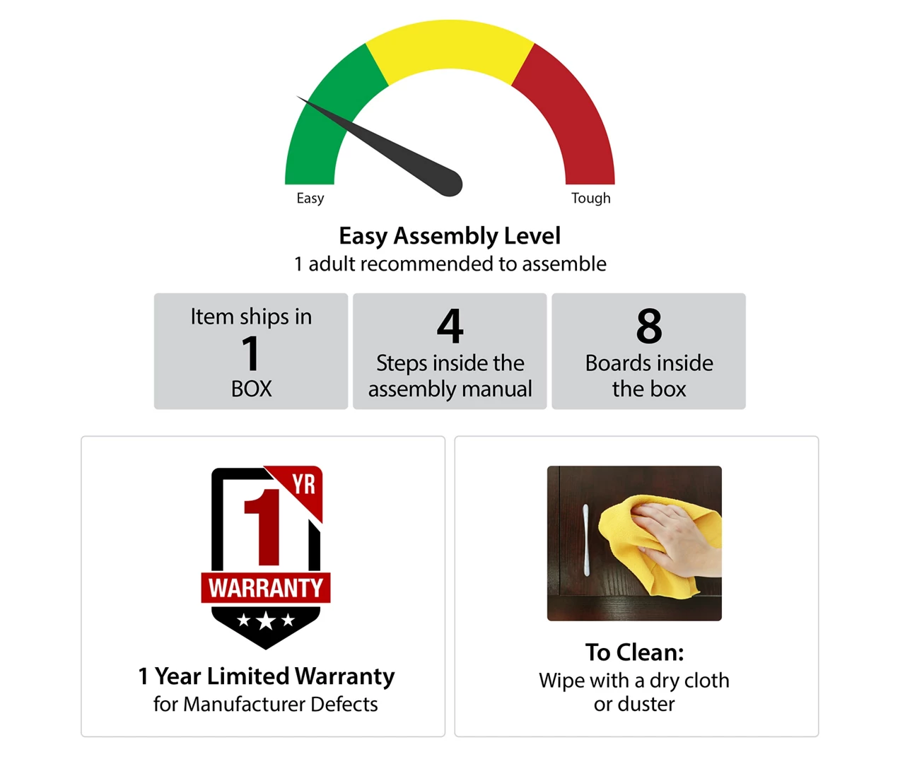 - Bold design with powder-coated steel legs and dark brown woodgrain shelving