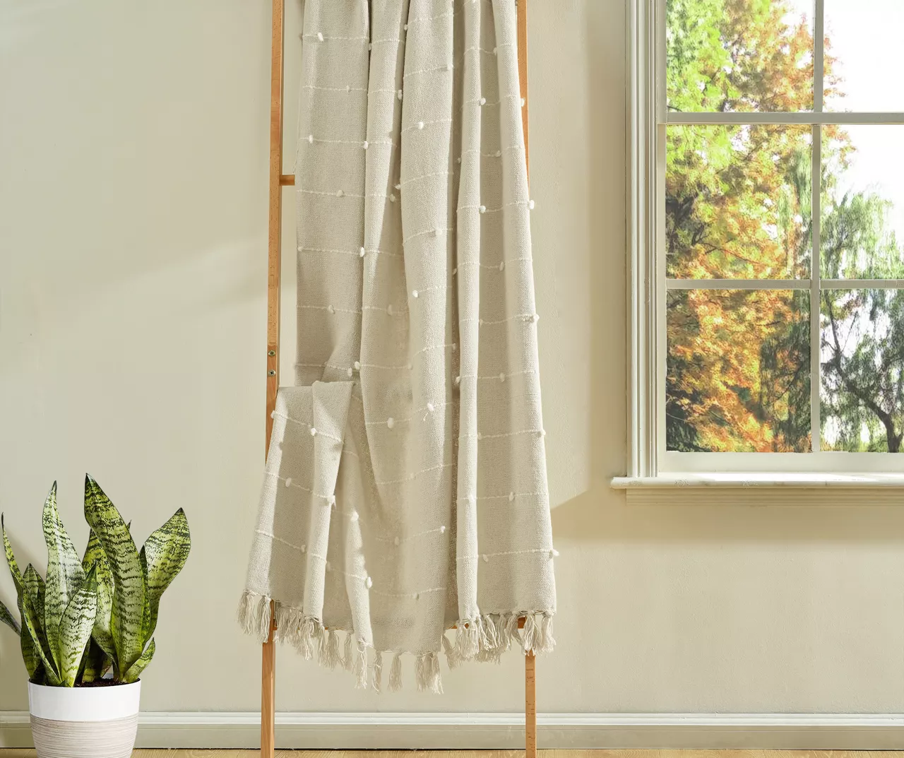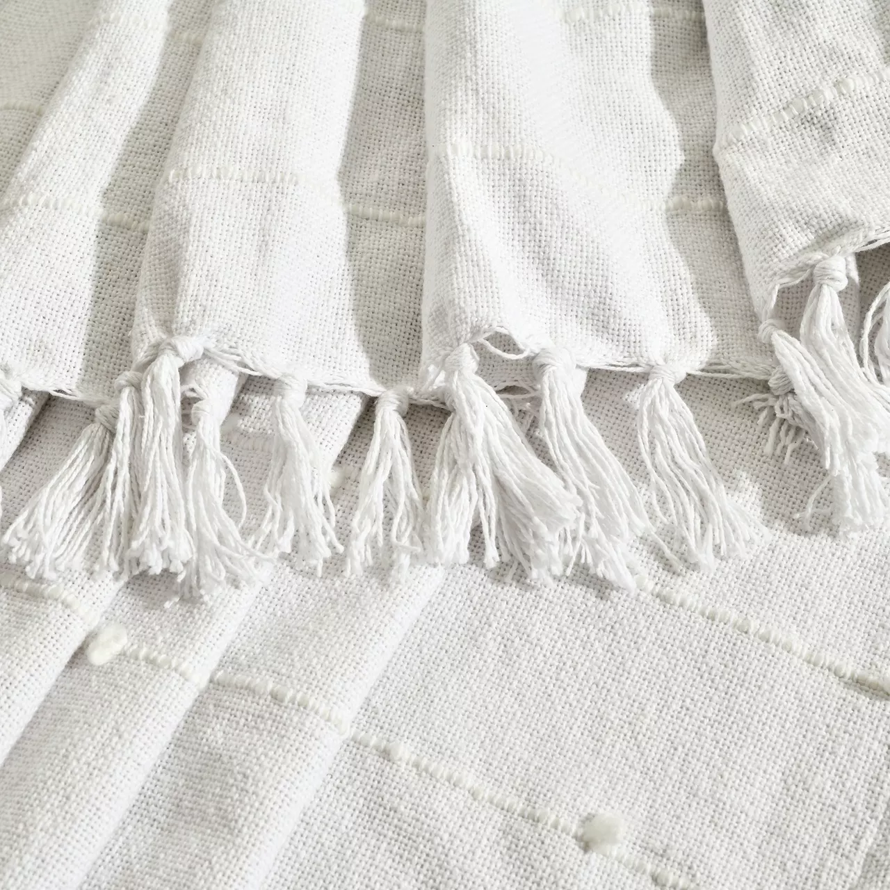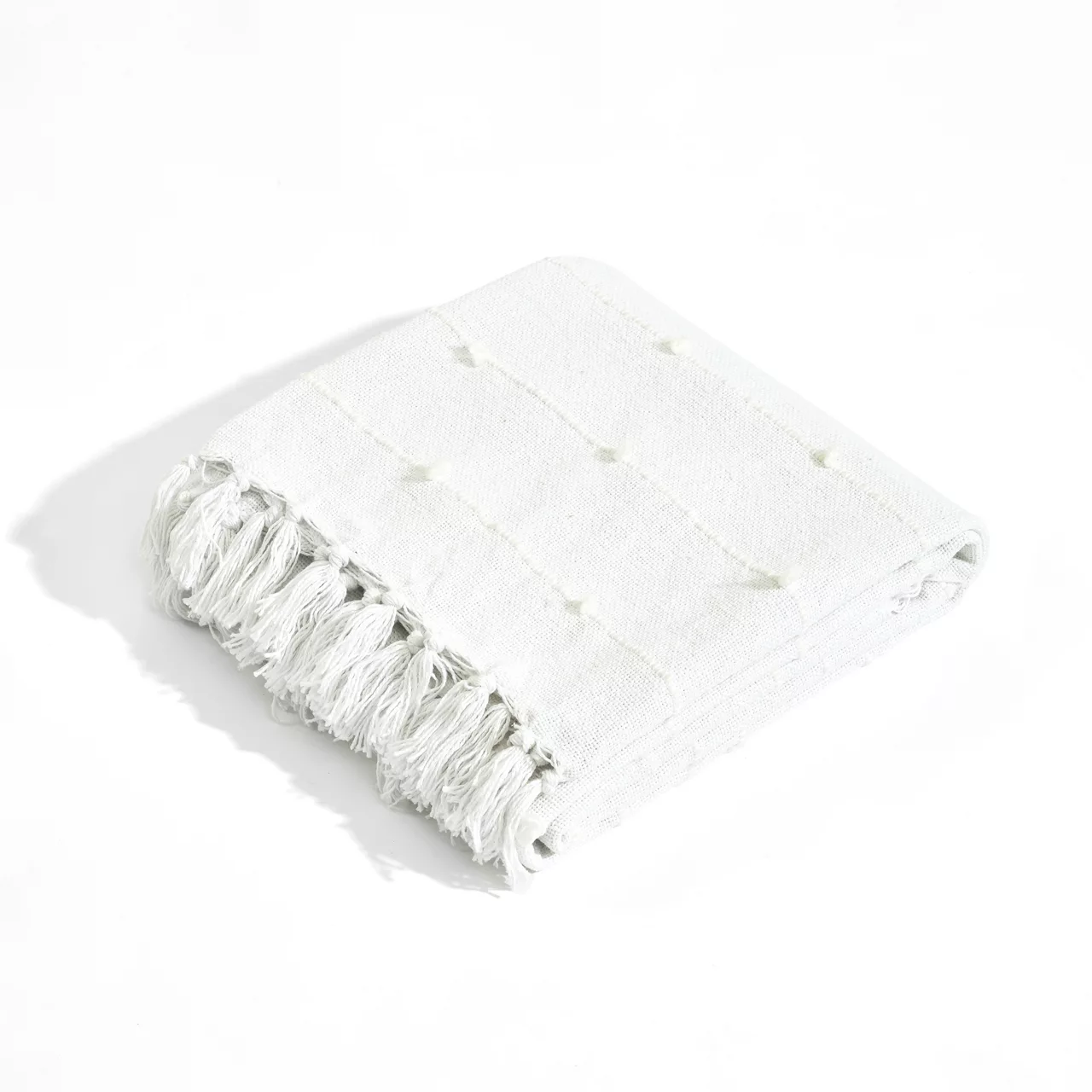 Tufted texture and playful tassels define this boho throw for free-spirited vibes in your living space. A soft cotton-acrylic blend ensures lightweight warmth and comfort.
